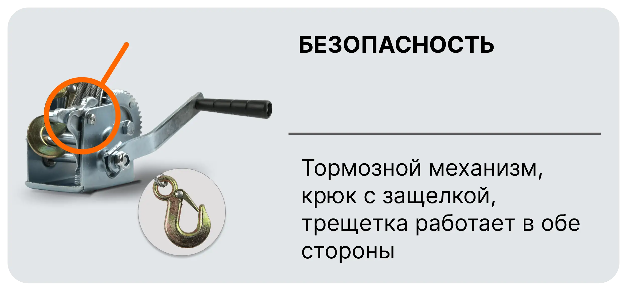 - Крюк с защелкой для безопасного использования.
