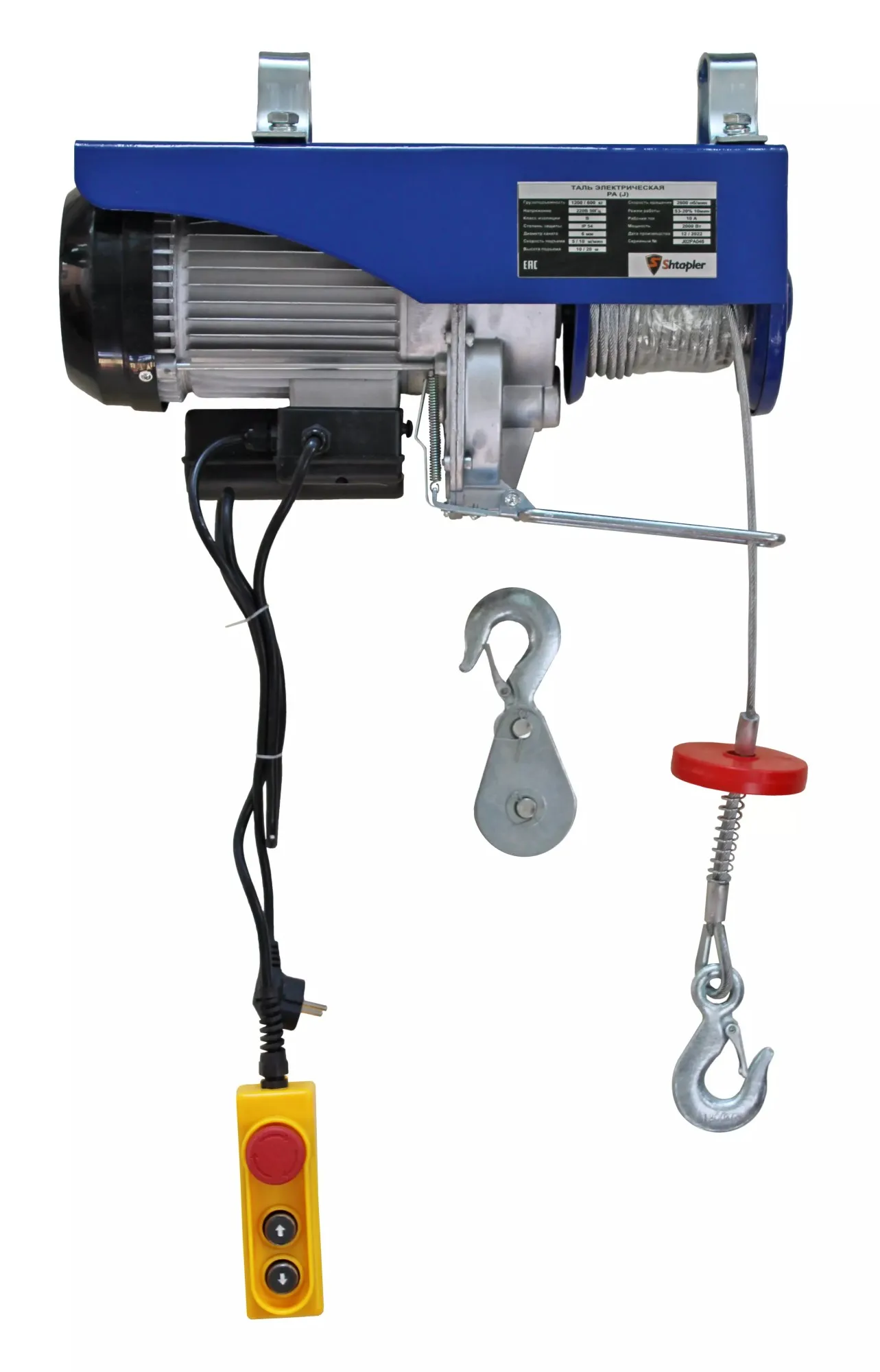 Стационарная односкоростная электрическая таль Shtapler PA (J) 1200/600 кг 6/12 м предназначена для подъема грузов весом до 600 кг на высоту до 12 метров. Для удобства работы на большой высоте таль оборудована проводным пультом. При использовании полиспаста можно увеличить грузоподъемность тали до 1200 кг при уменьшении высоты подъема до 6 метров. Таль защищена от воздействия внешней среды по стандарту IP 44.
