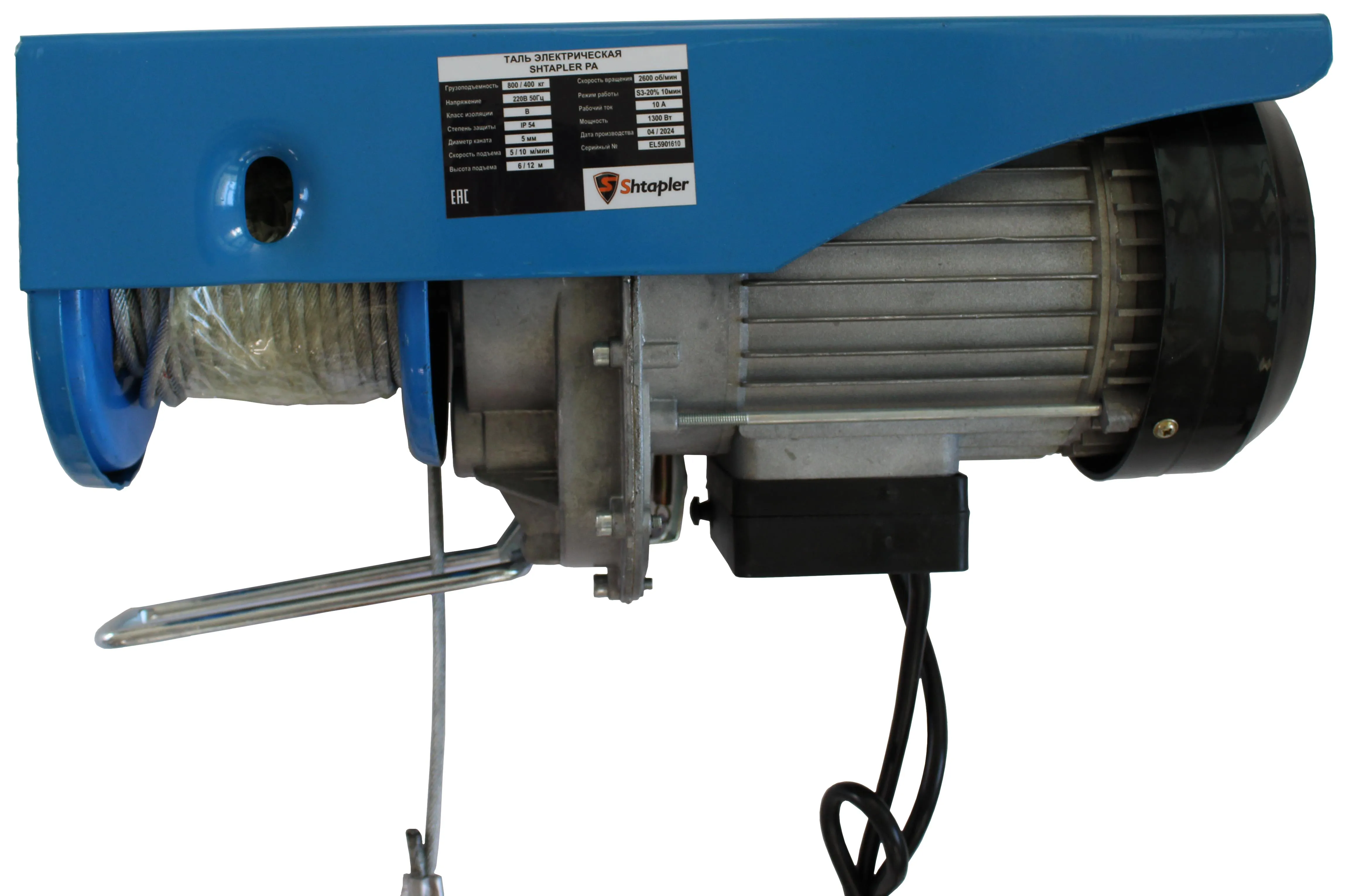 Передвижная односкоростная электрическая таль Shtapler PA (J) 800/400 кг 6/12 м предназначена для подъема грузов весом до 400 кг на высоту до 12 метров. Каретка передвижения позволяет перемещать таль вдоль монорельсовой балки. Для удобства работы на большой высоте таль оборудована проводным пультом. При использовании полиспаста можно увеличить грузоподъемность тали до 800 кг при уменьшении высоты подъема до 6 метров. Таль защищена от воздействия внешней среды по стандарту IP 44.