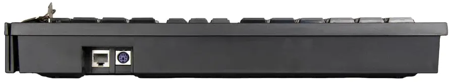 - Разъёмы RJ-45 и PS/2 размещены на кромке клавиатуры.